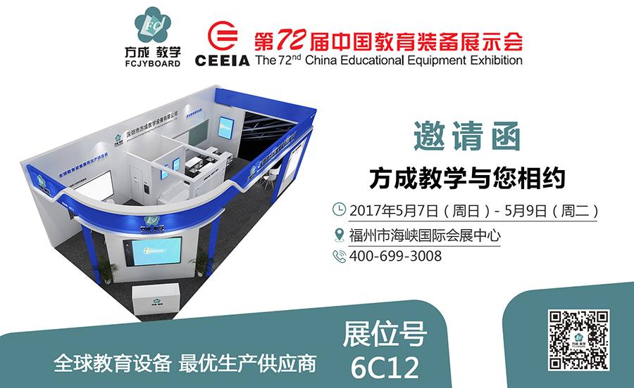 又是一年春意盎然,又是一次久別重逢,2017年5月7日至9日我們在福州市海峽國際會展中心迎來了第72屆中國教育裝備展示會,在這個廣闊的平臺上,方成教學(xué)主力推出新產(chǎn)品亮相于6號館C12,我們將熱忱恭候你的光臨!