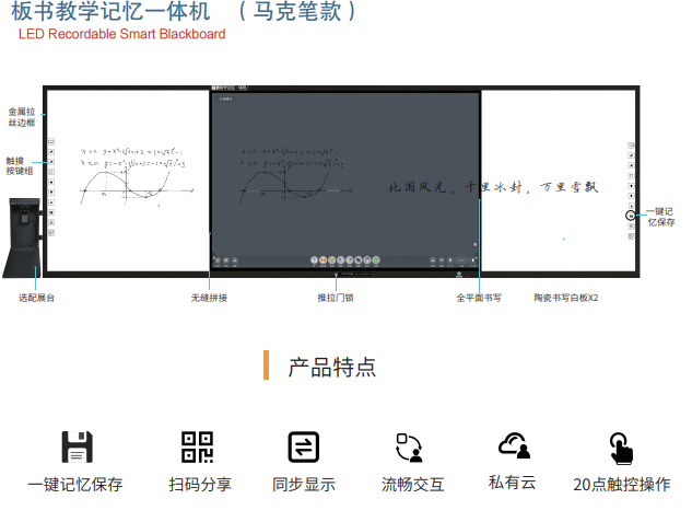傳統(tǒng)黑板板書,由于空間有限,老師在授課的過程,往往是邊寫邊擦,擦除后內(nèi)容也就沒了。一鍵記憶,能夠?qū)⒗蠋煱鍟鴥?nèi)容實(shí)時(shí)、自動(dòng)存儲(chǔ),解決了板書內(nèi)容擦除即清空的困擾。