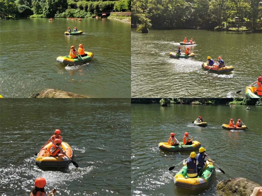 湖邊景色秀美,大家迅速帶好安全帽,穿上救生衣全副武裝,蓄勢待發,開啟一段驚險刺激的漂流旅程,乘風破浪,向著同一個目標,堅定信念出發,堅信安全抵達。