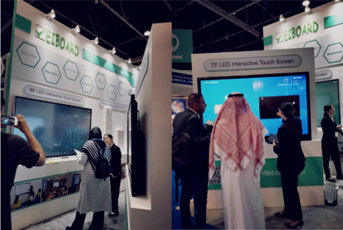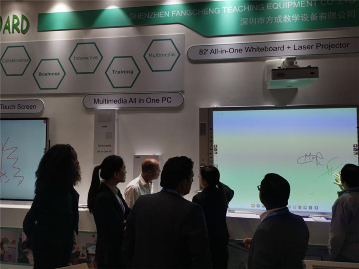 方成教學超窄邊框液晶系列,采用超窄、三等邊設計原理,全新拉絲陽極氧化工藝,以精湛的外觀吸引參展嘉賓圍觀,其中多屏預覽、多屏交互、語音控制等功能,貼近實際客戶的需求,吸引現場嘉賓們的體驗,深受中東地區嘉賓們的肯定。