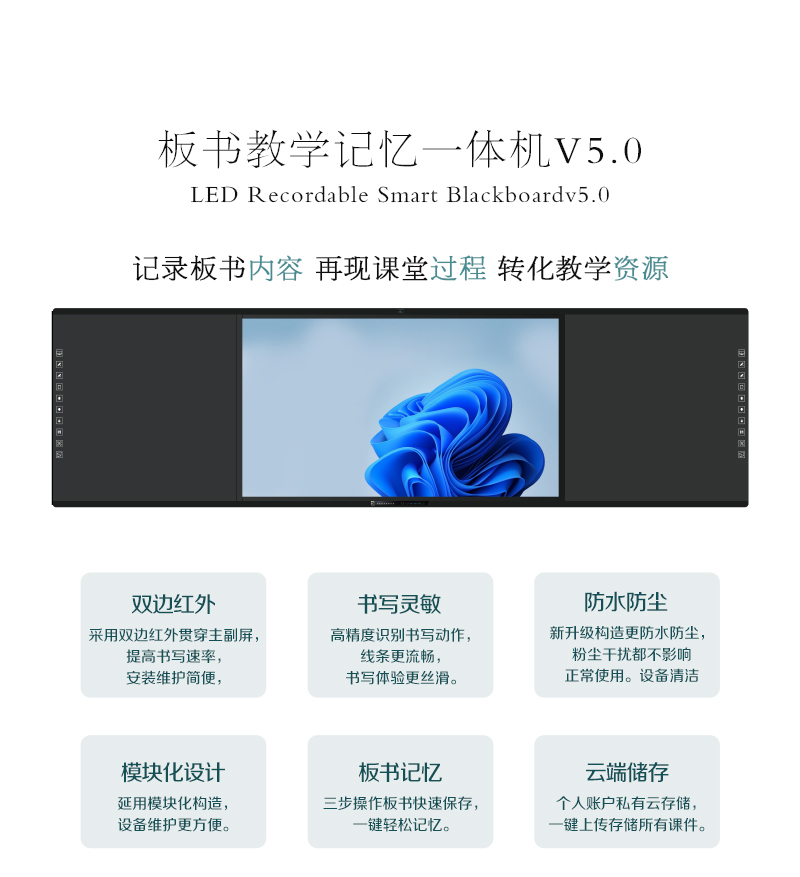 板書教學記憶一體機-記錄板書內容、再現課堂過程、轉化教學資源,板書教學記憶一體機集六大產品于一機,在不改變老師板書習慣的前提下,實現傳統教學與多媒體設備的智慧融合,設定了有板書記憶、板書同步顯示、板書自動分享等多樣化功能,每一個功能的實現都賦予了自己的使命。